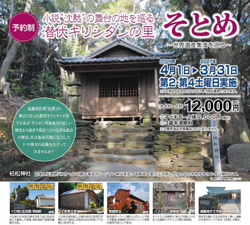 - 世界遺産ツアーは、映画“沈黙”の舞台である潜伏キリシタンの里「そとめ」を巡るプランです。